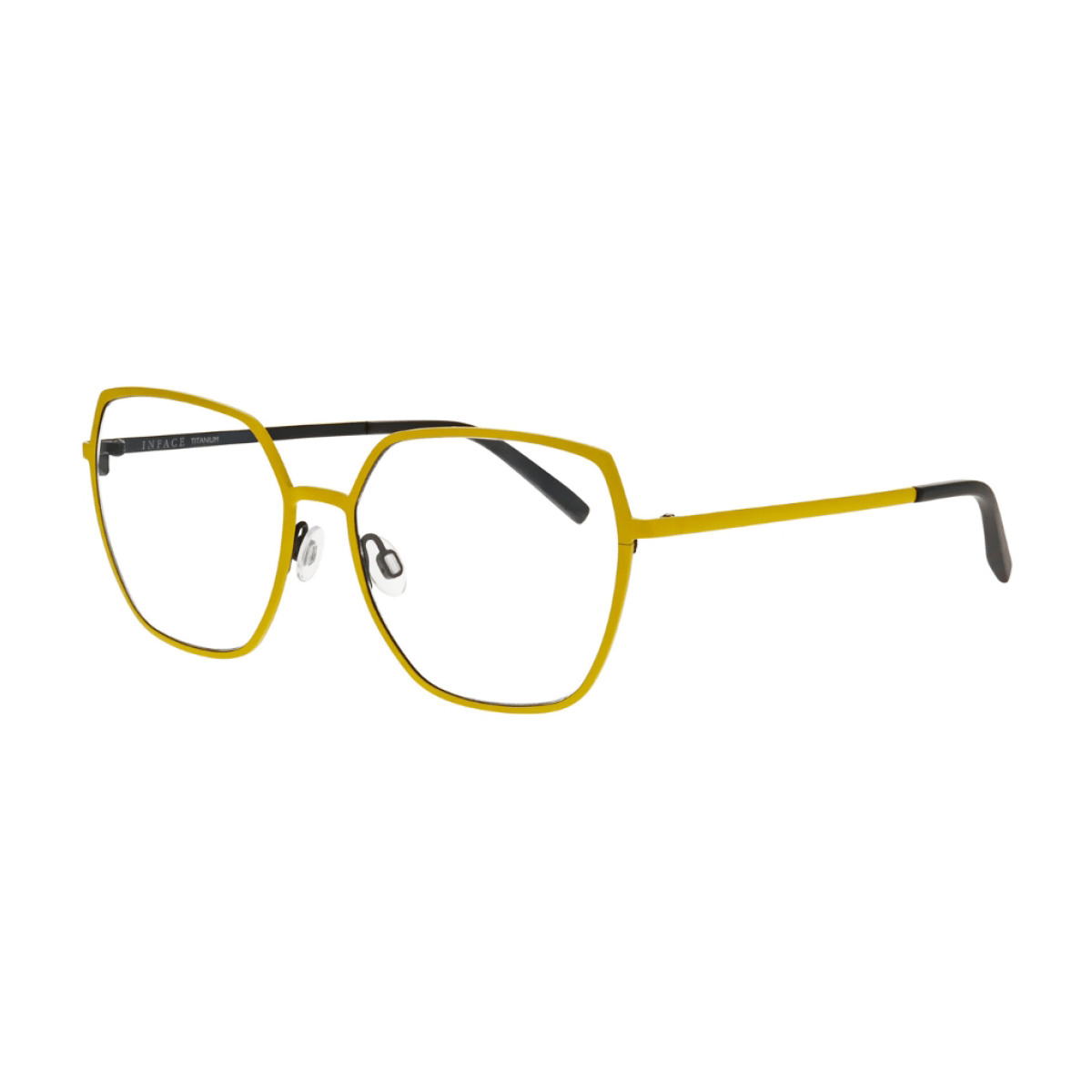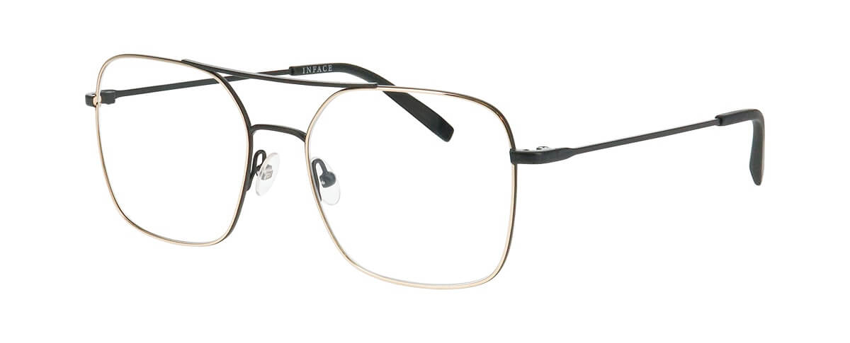This innovative direction combines a stainless steel rim front with acetate end pieces and temples, creating a striking fusion of materials and volumes. The result? A frame that truly has character and style. COMBI features a light, elegantly constructed front paired with bold, chunky end pieces and temples. The fronts come in light gold, gun, silver, and matte black, complemented by a mix of both wild and subtle colours in the acetates — staying true to the Inface spirit.